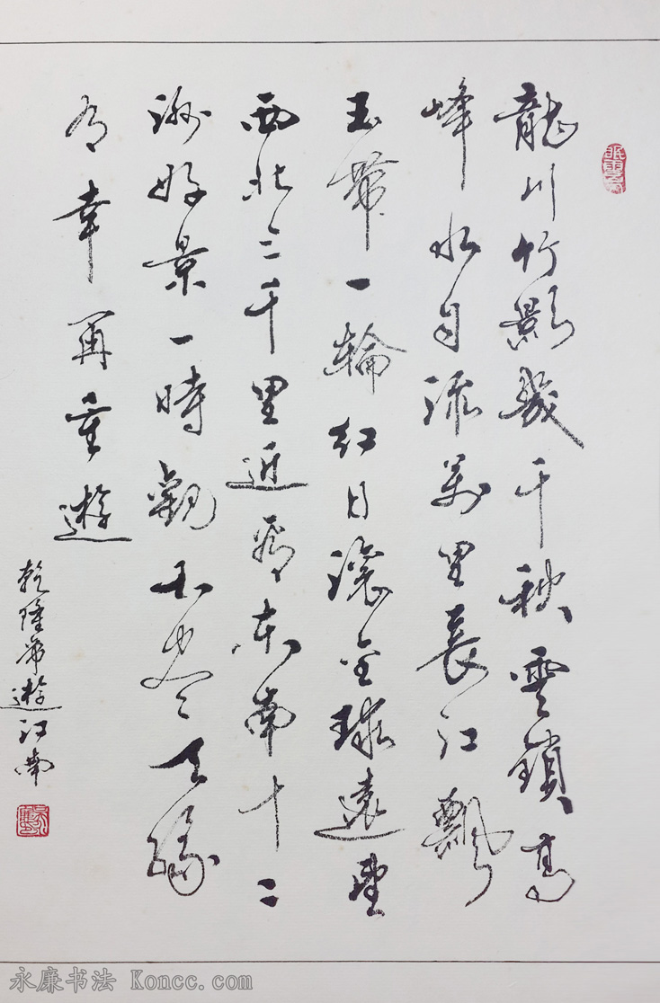 龙川竹影几千秋,云锁高峰水自流。